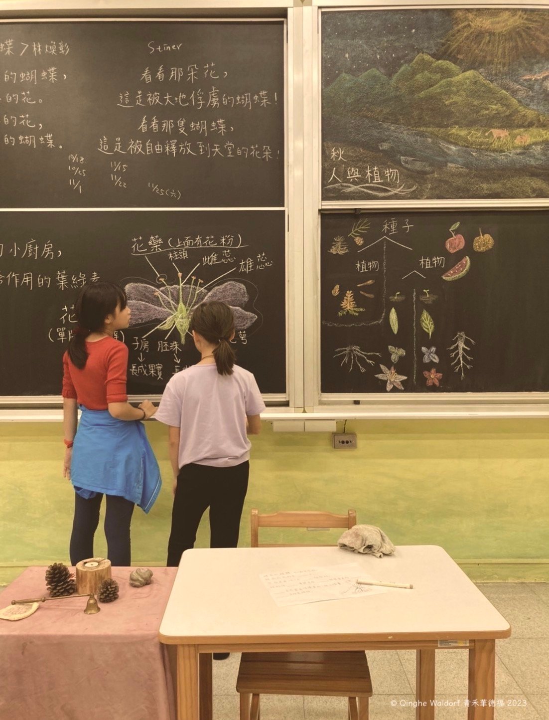 以圖像呈現的知識,在華德福學校至關重要,尤其是教師手繪的黑板畫,揭示著教師對於世界的理解與他傾注的無比熱情,它激發出孩子的好奇心與內在動機,對孩子產生潛移默化的影響。