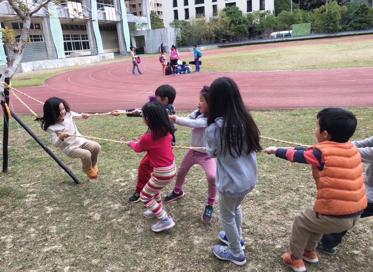 在自由遊戲與體能鍛鍊的時間,孩子們一同遊戲,從衝突與合作之中,學習與同儕相處,也鍛鍊身體。