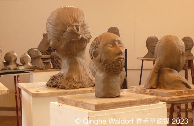 課程中,素描的研究也有助於陶土形塑的過程,我們的目標並不是形塑出擬真的肖像,而是透過了解凹與凸的形體及人體頭部從整體到細節的動態,顯現出球體與宇宙的形狀,而透過人體下巴的產生,人類從平面方向提升至垂直方向的空間,它決定了頭部的位置與方向,甚至顯示出人類的直立性。感官器官如嘴巴、鼻子、眼與耳,除了有各自的美與複雜性,同時也融合在更大的整體形狀中。
